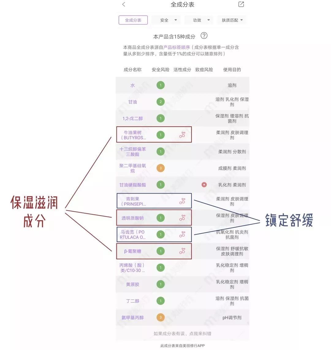 ○ 马齿苋提取物:自家专利成分,主打舒缓抗敏减少刺激,保湿修复。