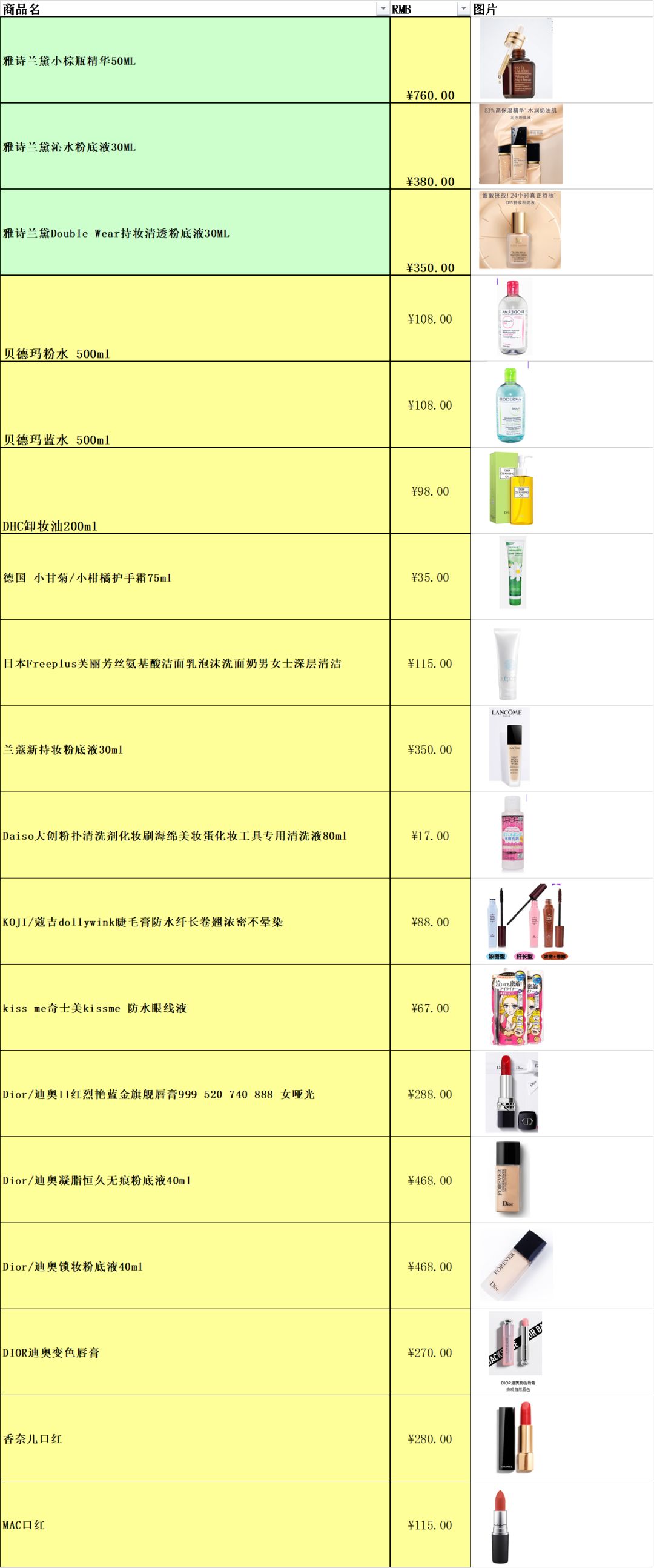 等过段时间香港平静了就可以开始香港代购了,主要代购化妆品,包包,衣服等,不做电子产品的代购。以下是一些化妆品的价格,其他商品大家可以询价,绝对香港正品,有需要的同学可以加小姐姐