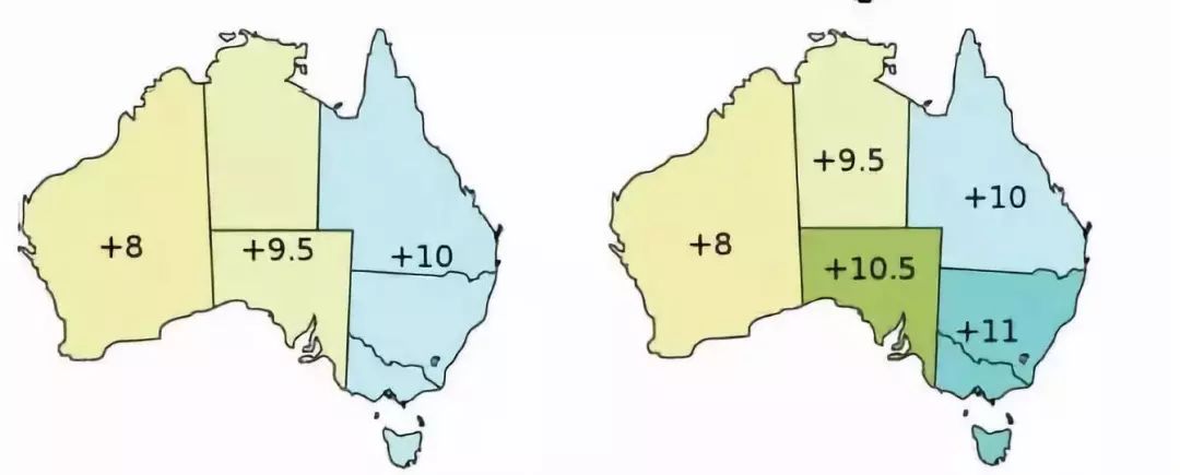 澳洲在冬天仅有3个时区,而到了夏天就神奇的变成了5个时区,这在众多的时差党们的眼中,简直是乱的不能再乱了!