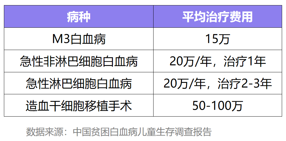 其实这个问题的关键点在于,买了其他的重疾险如果真的确诊为白血病,赔付的钱够不够治病?大家可以看一看下面这张表: