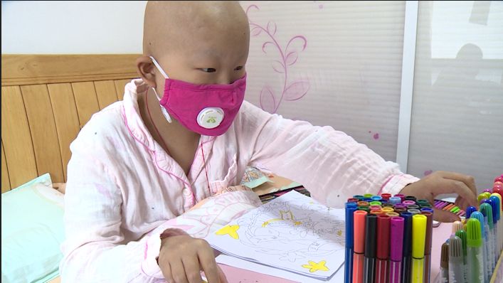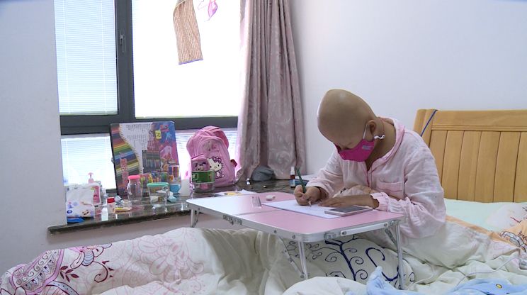 这个在床前画画的小女孩叫杨钦程,2015年命运和她开了一个巨大的玩笑,突如其来的白血病向她袭来。