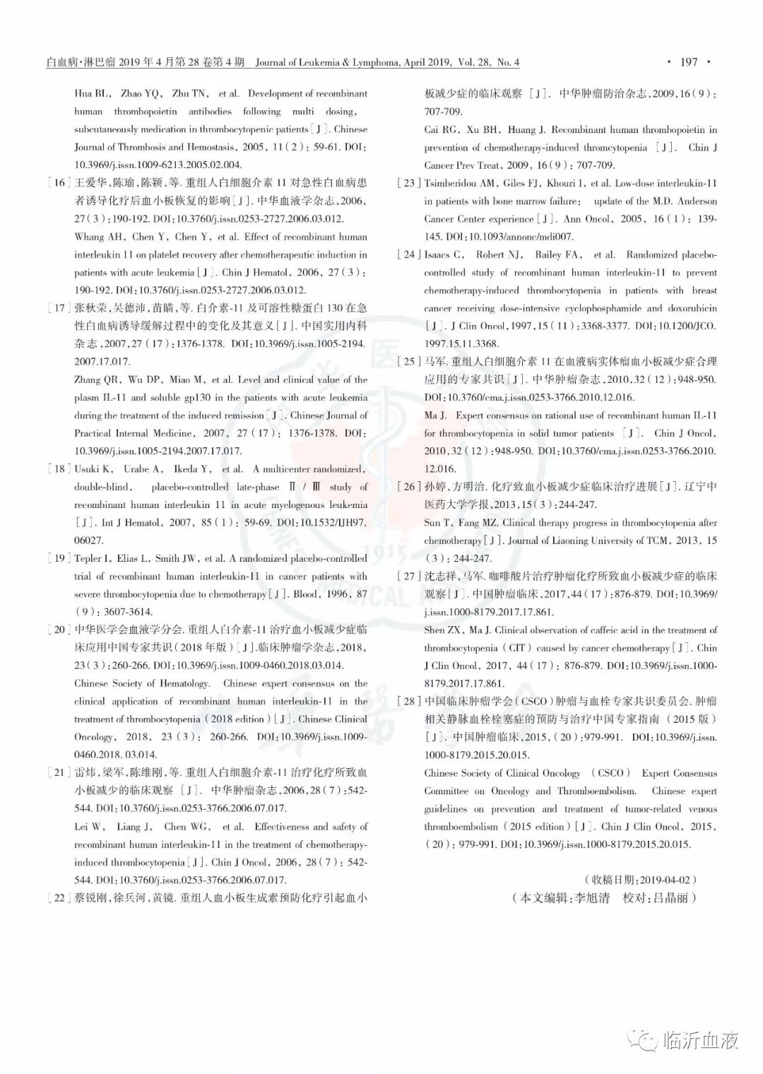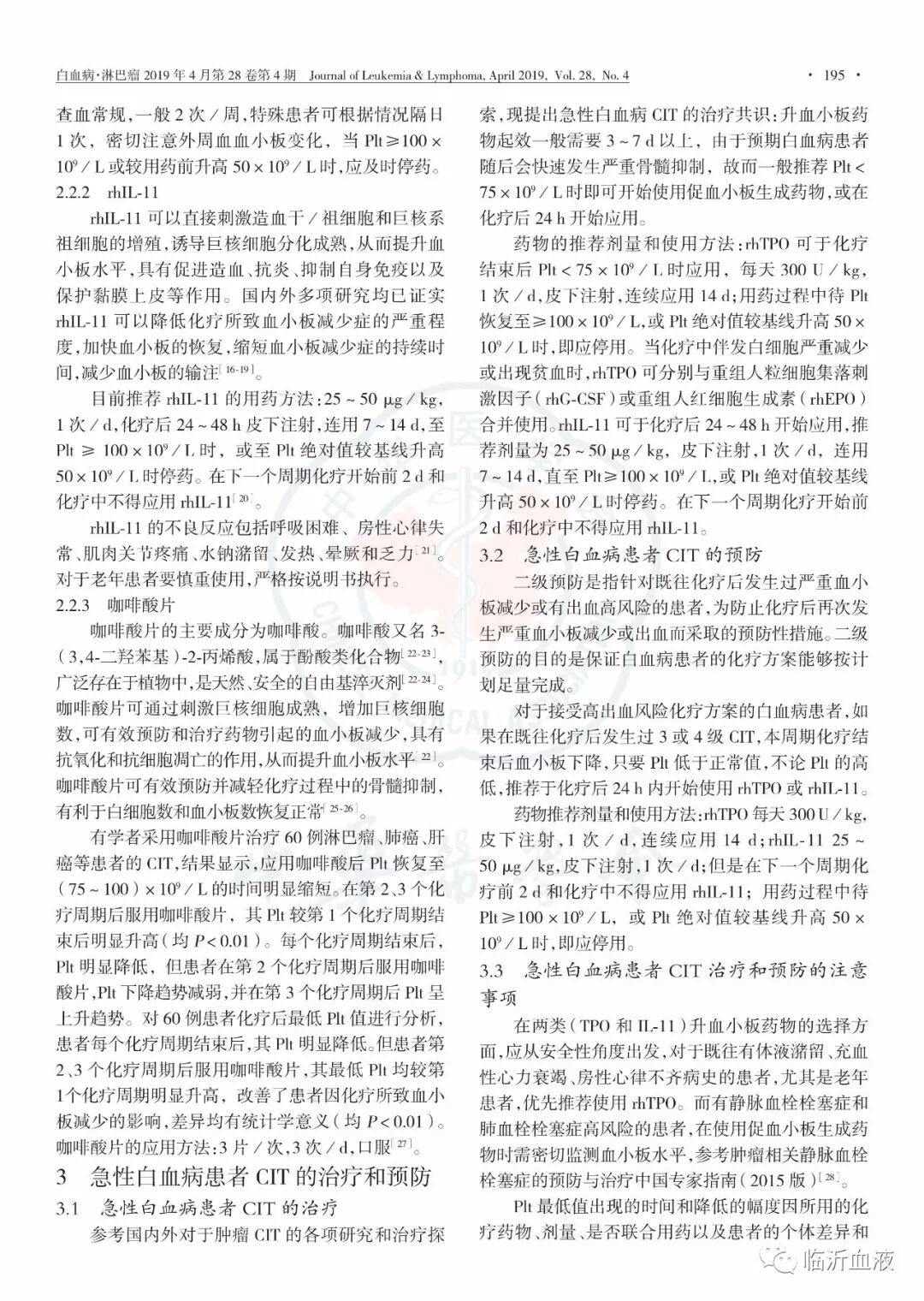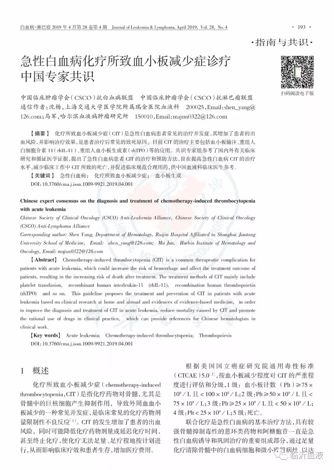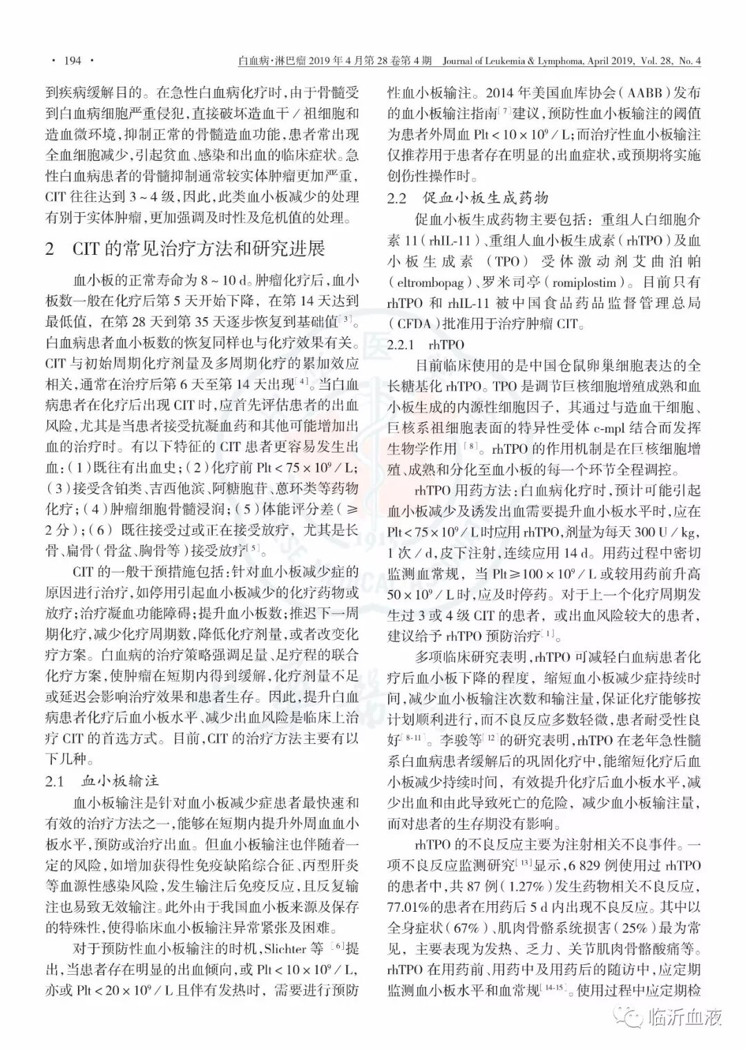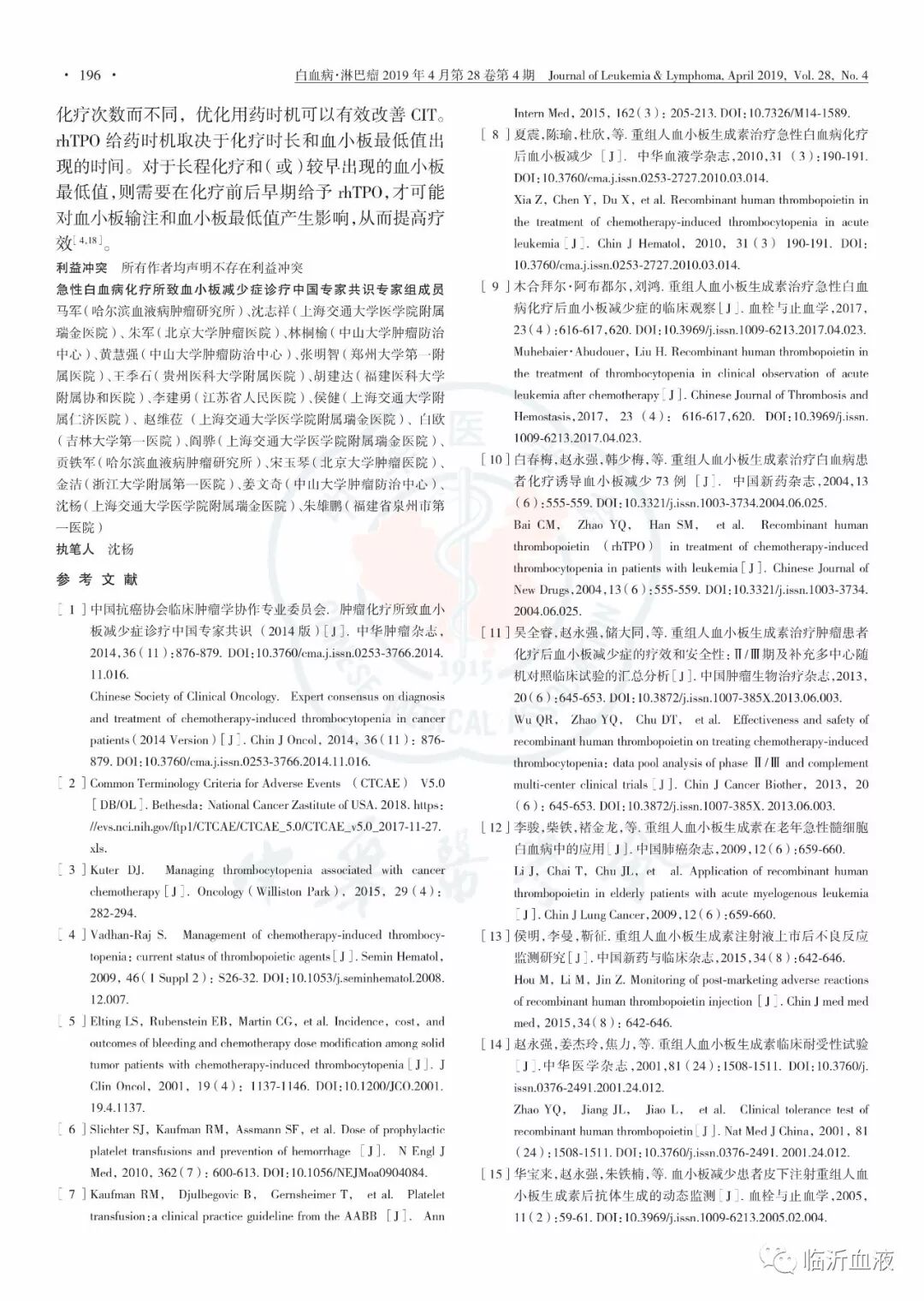 急性白血病化疗所致血小板减少症诊治疗中国专家共识