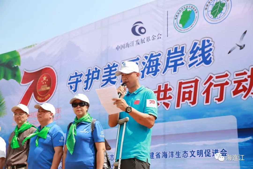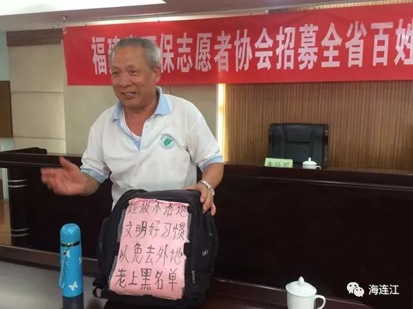 “只为心中那片海”,黄岐四海环保志愿服务队创始人林金松,背着背篓行走在黄岐半岛海滩上清理海漂垃圾,这一弯腰就是19年。2017年,林金松结束十余年的“单打独斗”,建立了四海环保志愿者服务队,队伍从最初的40多人发展到现今的200多人,举办了至少50场环保活动。