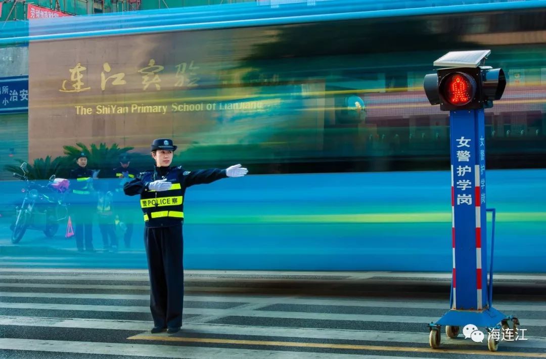 由县公安局开展的女警护学岗,让连江实验小学上放学高峰期的交通更加安全有序;