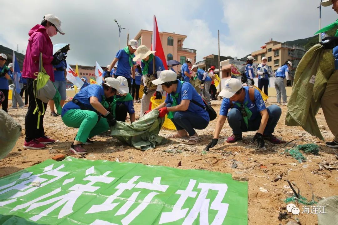 今年6月,在赤澳沙滩,志愿服务队组织当地志愿者和村民近200人,一同参与第二十二期“蓝海环保行动”。“蓝海环保行动”活动至今已经举办24期,清理垃圾上万公斤,更与马祖澳两岸达成互动,两地人员定期往来,协作清理海漂垃圾。
