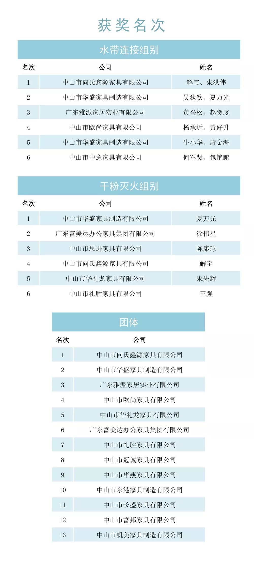 再次祝贺在广东中山首届办公家具行业消防技能竞赛中获得荣誉的个人和单位!