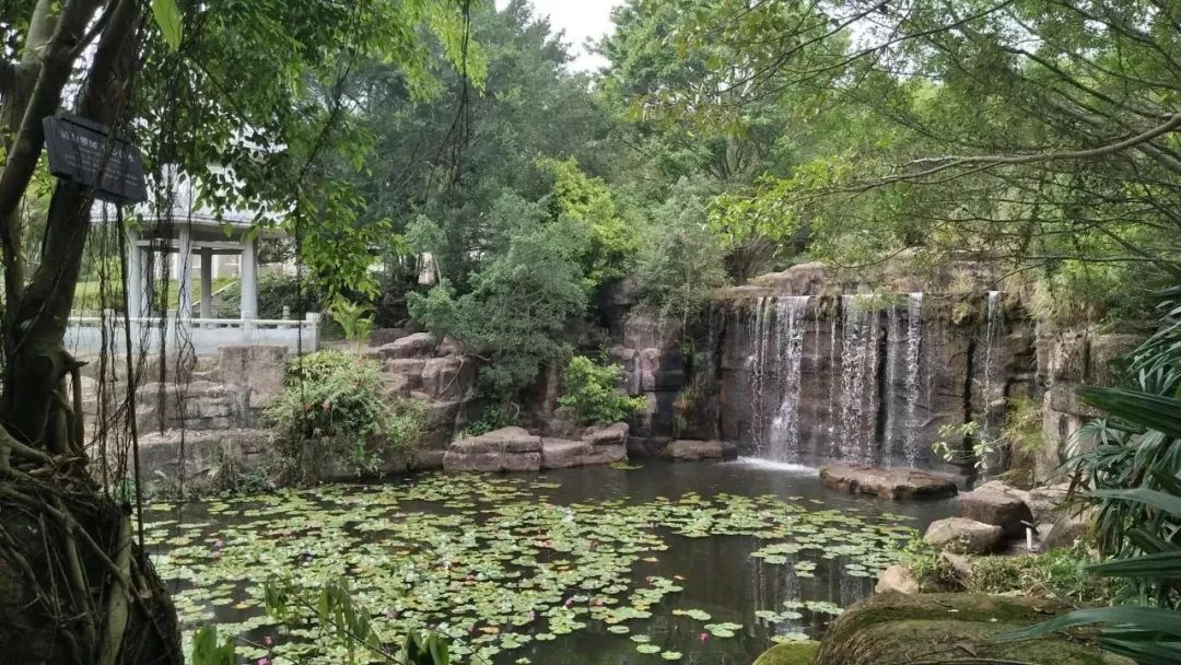 园内集沼凝翠,芳草依依,可凭栏观景,