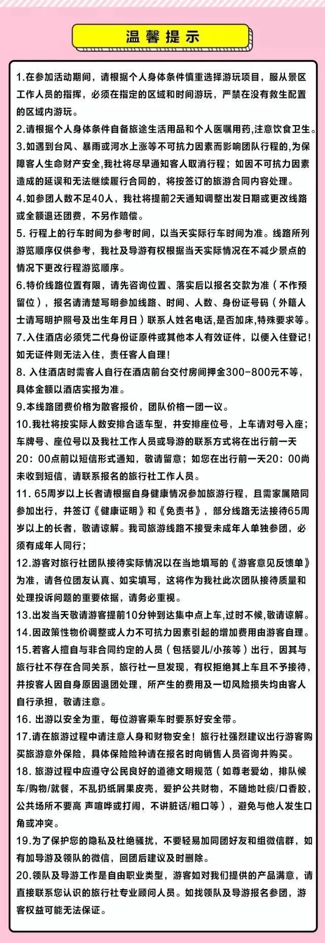1、交通:按实际参团人数安排空调旅游巴士,每人1正座2、导游:提供专业导游服务