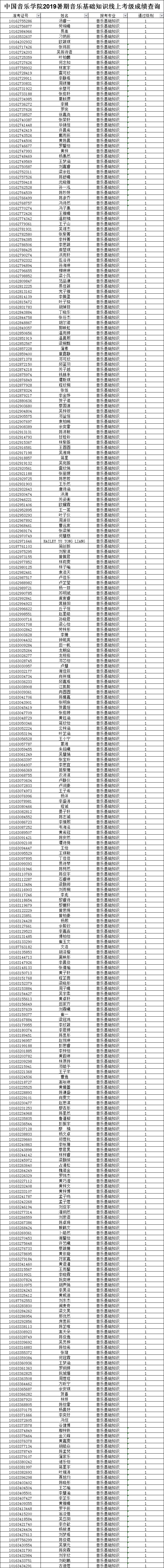 2、以下成绩是中山市考场自查的结果,如与最终成绩不符,以中国音乐学院考级委员会的公布结果为准。