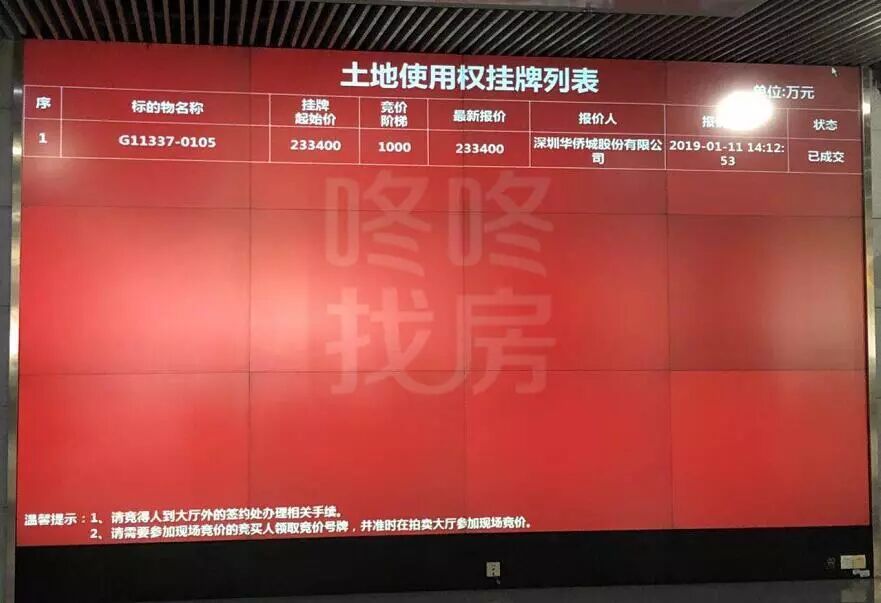1月11日,2019年深圳土地“第一拍”,该坪山商业用地由华侨城23.34亿获得。