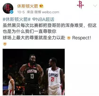 在第一条微博动态中,火箭队仅仅写了6个字:“新赛季,新开始#NBA”。再来回看火箭队以前的微博,几乎每一条动态里都充满轻松、愉快的意味。而时隔这么多天后,火箭队官方微博的发文却略显严肃,让人看起来非常心酸和不是滋味。在莫雷事件发生之前,火箭队一直是中国球迷最喜爱的球队之一,而如今,时过境迁,一切都变了味。