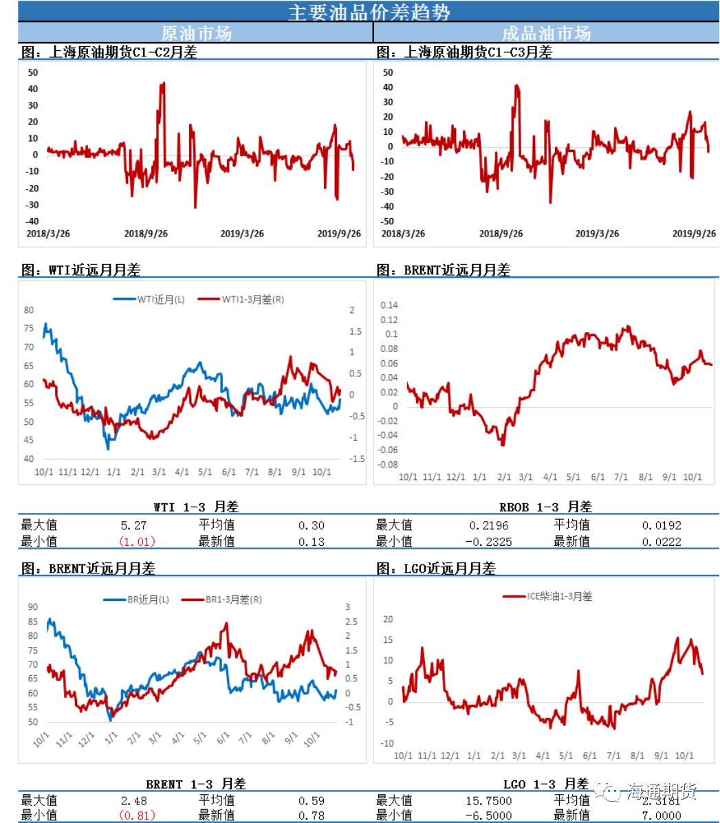 【1】WTI 12月原油期货收涨0.19美元,涨幅0.34%,报56.07美元/桶;布伦特12月原油期货收涨0.25美元,涨幅0.41%,报61.42美元/桶;INE原油期货主力合约SC1912夜盘收涨1.77%,报453.5元/桶。