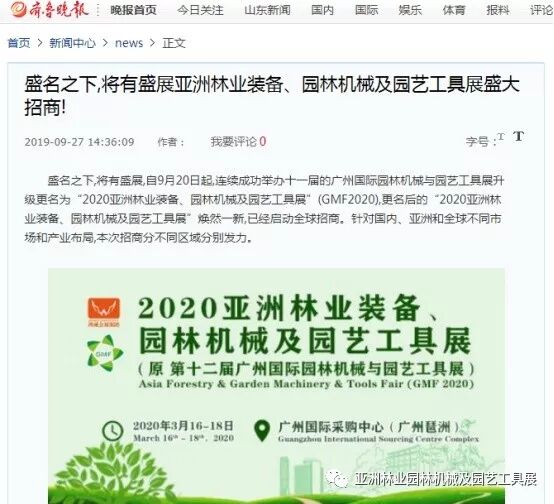 齐鲁晚报网盛名之下,将有盛展亚洲林业装备、园林机械及园艺工具展盛大招商!