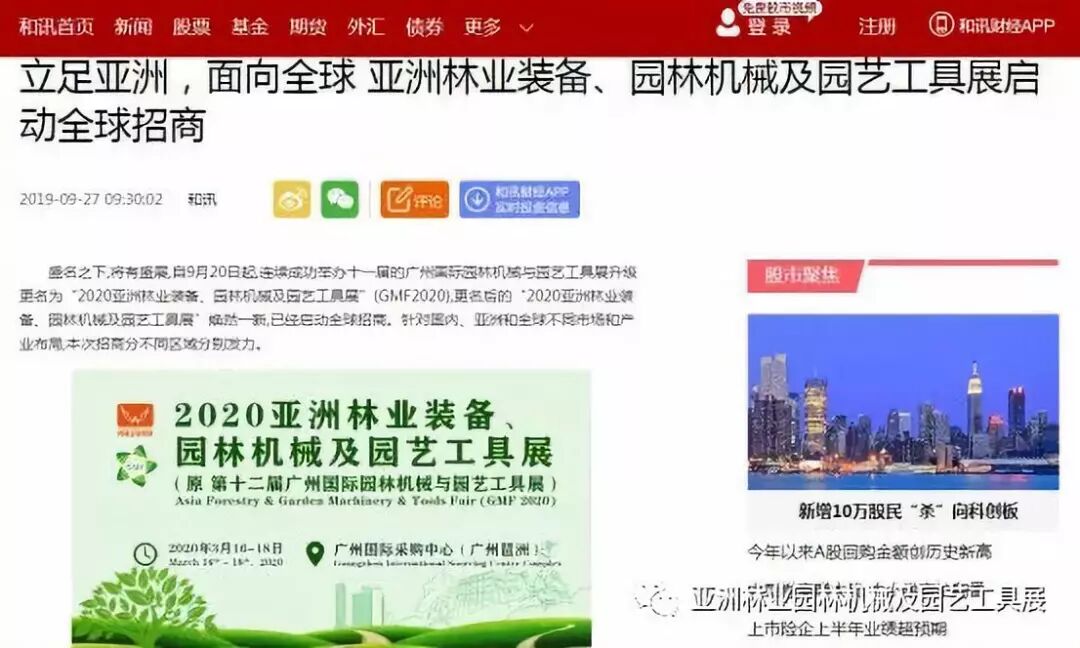 和讯网立足亚洲,面向全球 亚洲林业装备、园林机械及园艺工具展启动全球招商