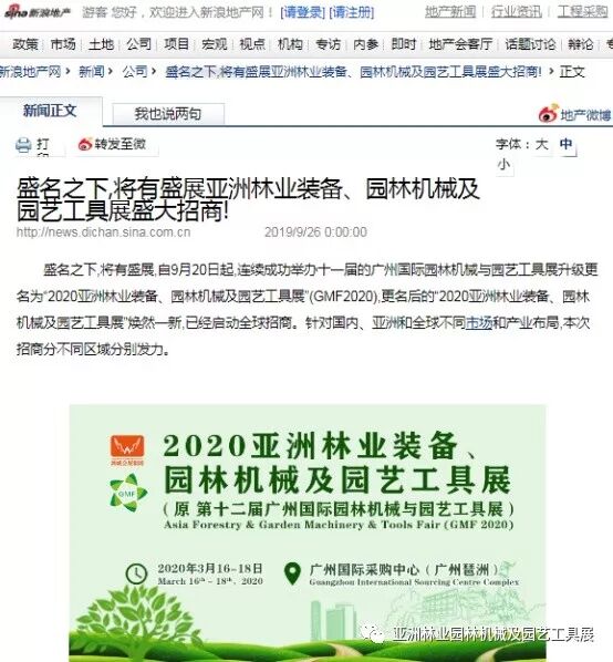 新浪地产网盛名之下,将有盛展亚洲林业装备、园林机械及园艺工具展盛大招商!