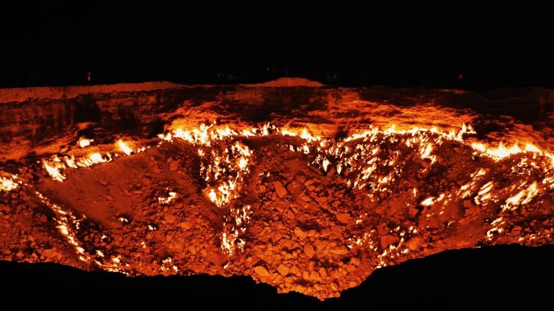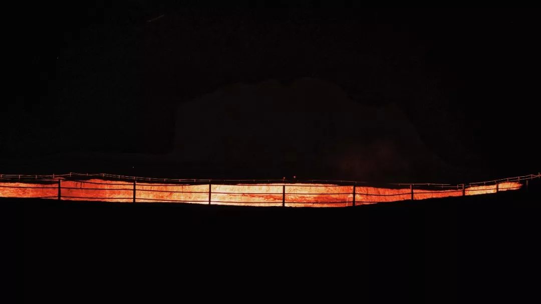 位于土库曼斯坦中心的卡拉库姆沙漠是中亚最炎热的沙漠,荒无人烟的沙漠深处竟留存着这一处旷世奇景。早在20世纪50年代的苏联时期,曾有人在此进行地质勘探,勘探过程中地面形成大范围坍塌,形成了如今的深坑。当人们得知坑底是天然气时,选择用火燃烧坑底的天然气,想将其燃烧殆尽来减少天然气挥发带来的环境污染,殊不知火焰熊熊燃烧持续至今。