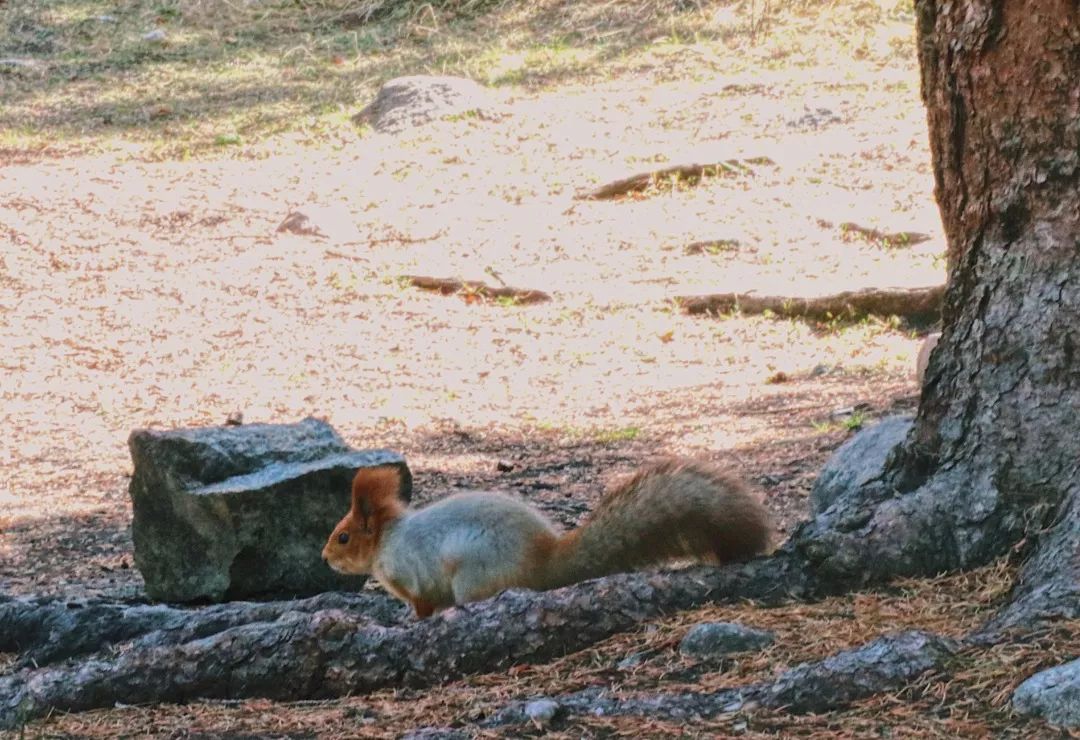 前来徒步的游客络绎不绝,我加入了一伙当地的青年探险队伍在峡谷中跋涉,柏油路在峡谷的中段戛然而止,只能在大小不一的石头上不断跳跃着艰难前行。途中邂逅林间的小松鼠,它似乎并不怯场,大方地在我们面前大快朵颐,令人忍俊不禁。
