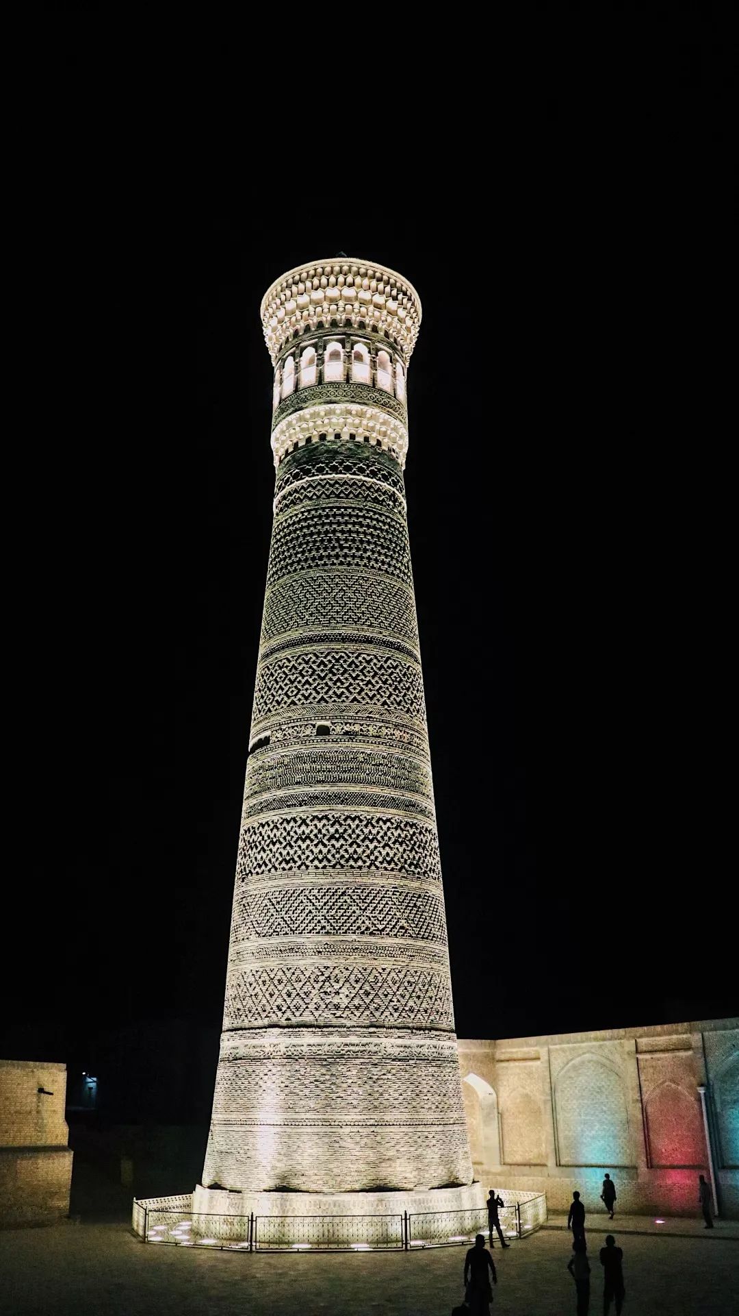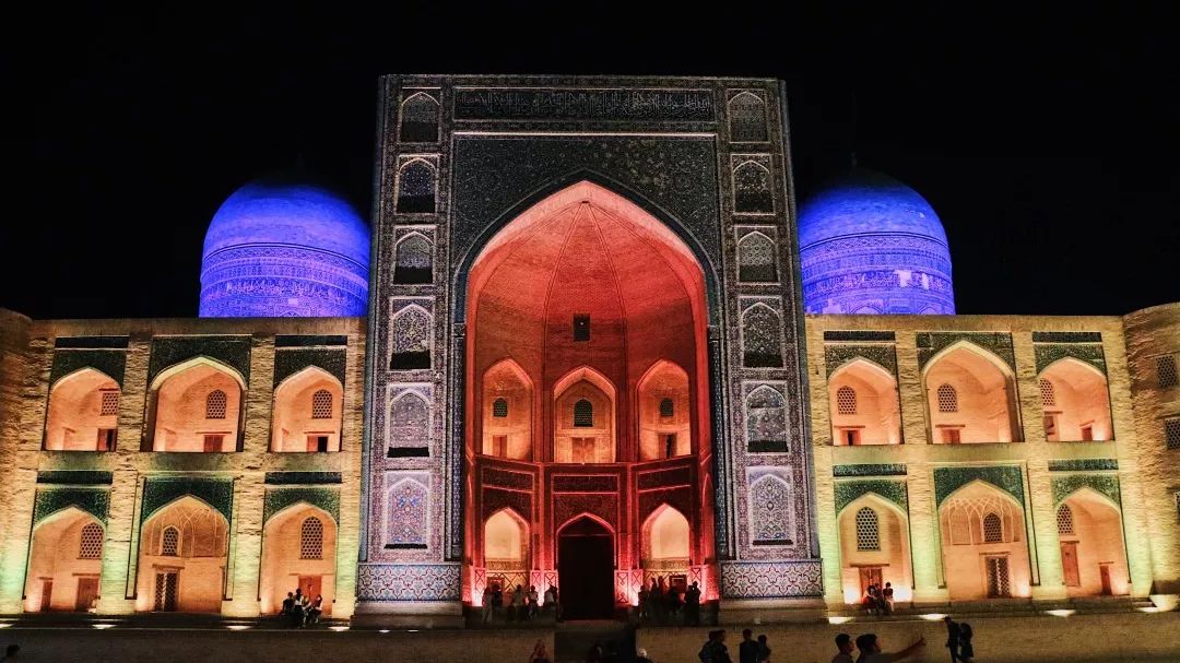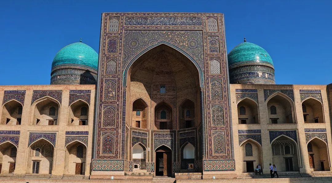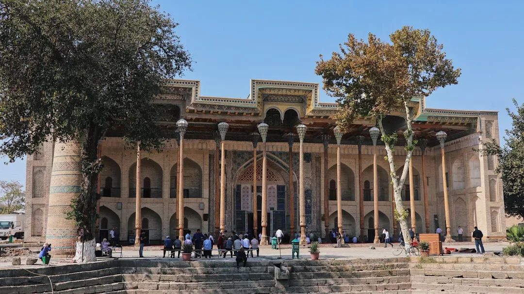 布哈拉的古建筑多分布在老城区,星罗棋布地或矗立在宽阔的广场里,或藏匿于狭窄的小巷中,当我沿着厚重的石板路在古城中踱步,天蓝色圆顶的清真寺、纹饰多样的宣礼塔与规模宏大的神学院仿佛低吟着,向我诉说着穿越千年的故事。