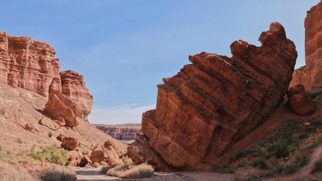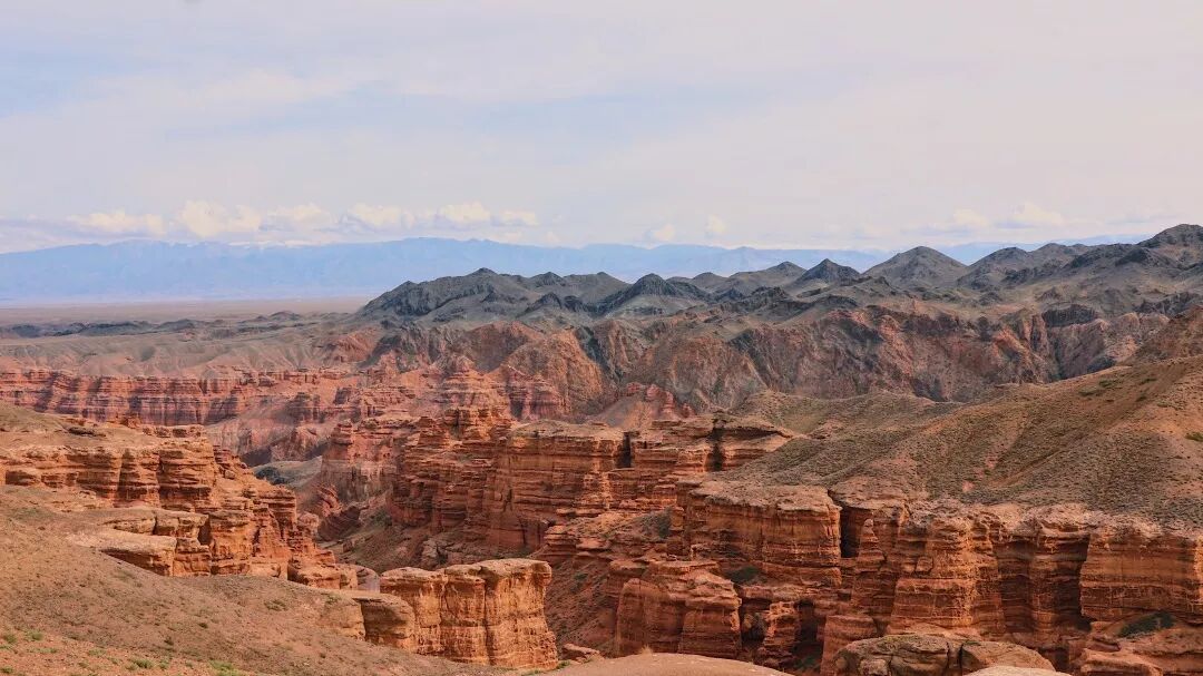 跋涉至哈萨克斯坦恰伦峡谷的谷顶,惊叹于鬼斧神工的雄奇山色。