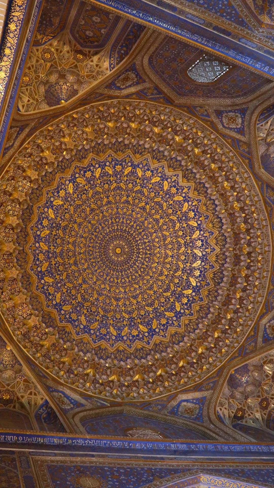 在空间辽阔的列吉斯坦广场的三面,分别屹立着这三座庞然大物般的神学院,错落有致,蔚蓝马赛克装饰的穹顶反射出属于撒马尔罕的荣光。列吉斯坦,译为“沙地”,是中世纪撒马尔罕的商业中心,在当时,整个广场是个规模庞大的集市。