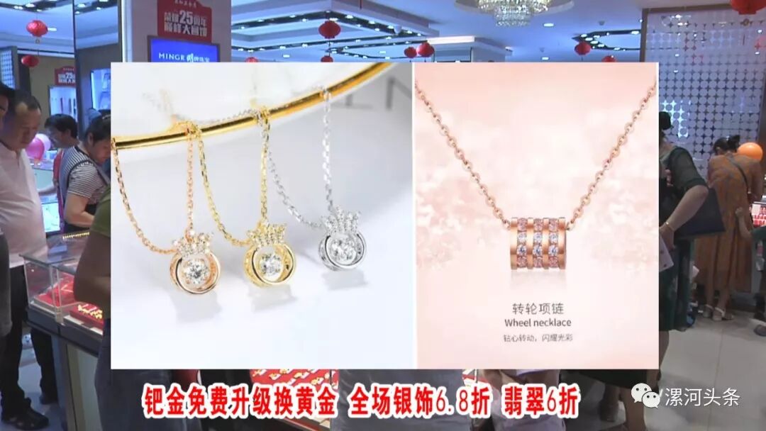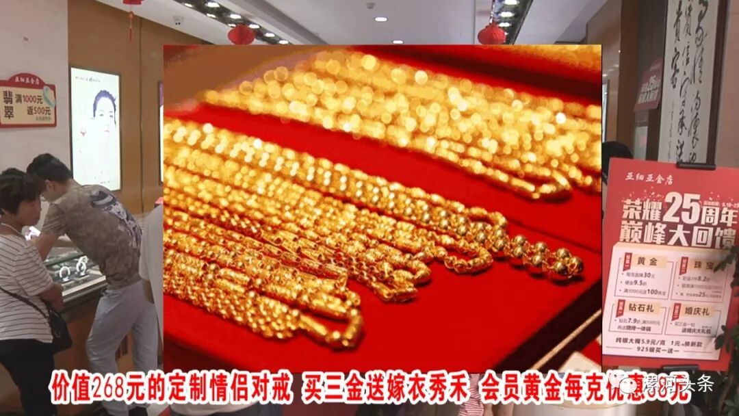 买三金送嫁衣秀禾;会员黄金每克优惠38元,钯金免费升级换黄金;全场银饰6.8折,翡翠6折。