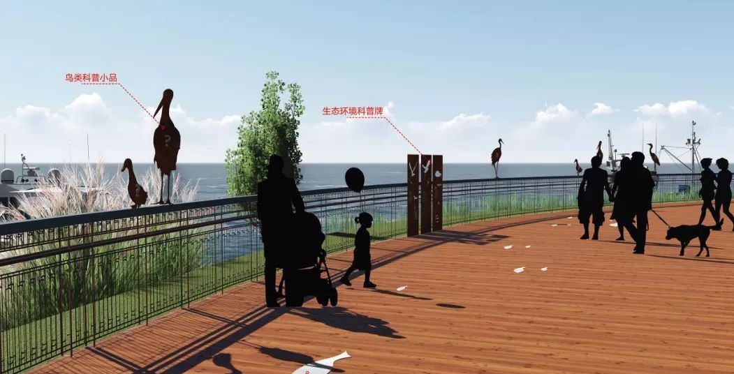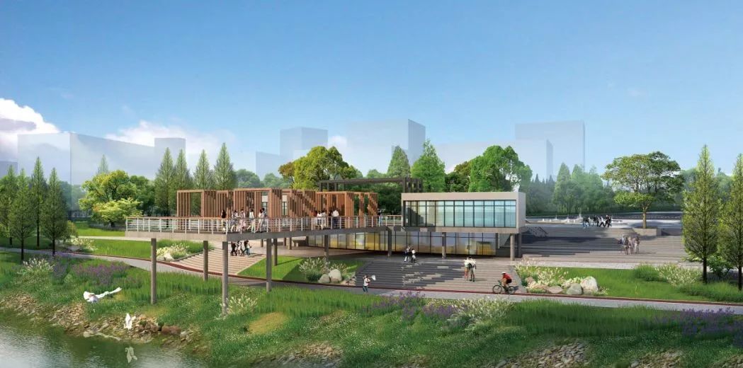 规划建设亲水平台、自行车冲浪体验段以及各式特色构筑物打造别样的滨水风光