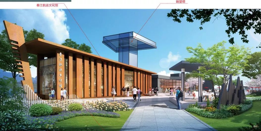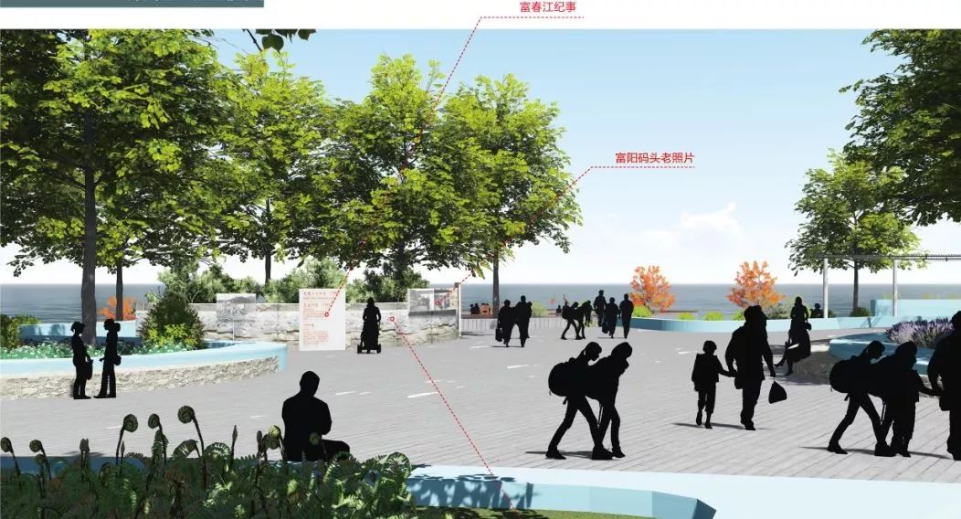 该段位于项目的最西边是富春湾新城通往老城区的重要景观带联系着富阳城市的历史与现今该段景观以怀旧为主讲述富阳与富春江的航运历史