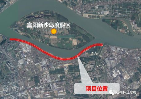 项目位于富春江南岸,与富阳区新沙岛隔江相望。