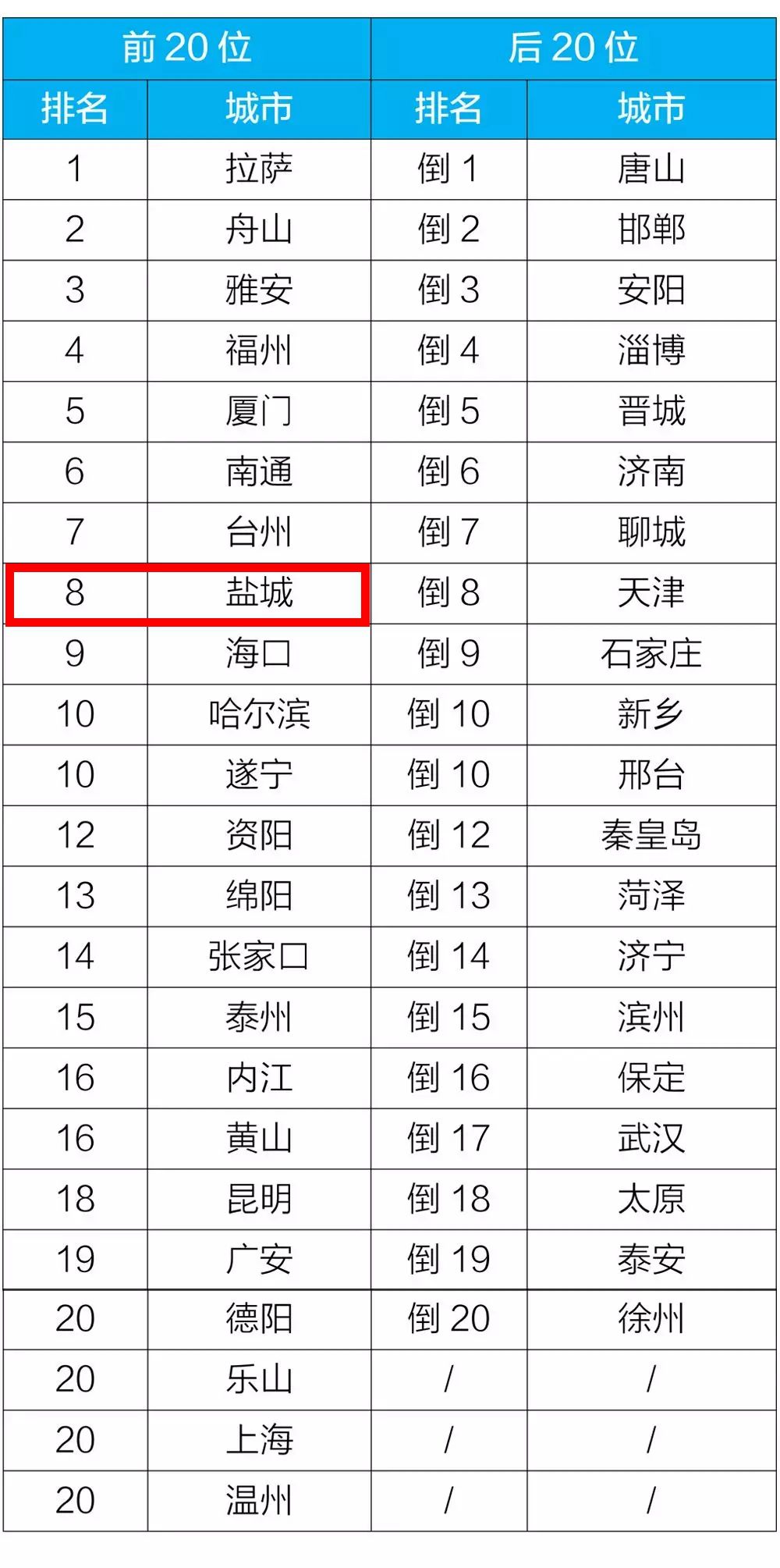 2019年9月168个重点城市排名前20位和后20位城市名单