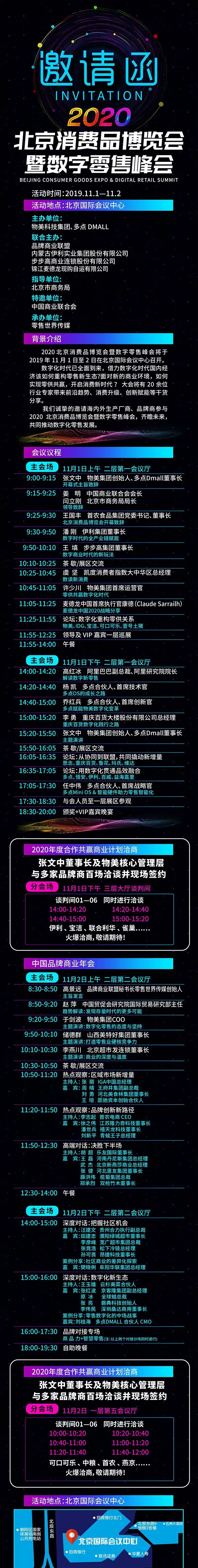 时间:2019年11月1-2日 地点:北京国际会议中心主办:物美集团 多点DMALL 品牌商业联盟 承办:零售世界传媒