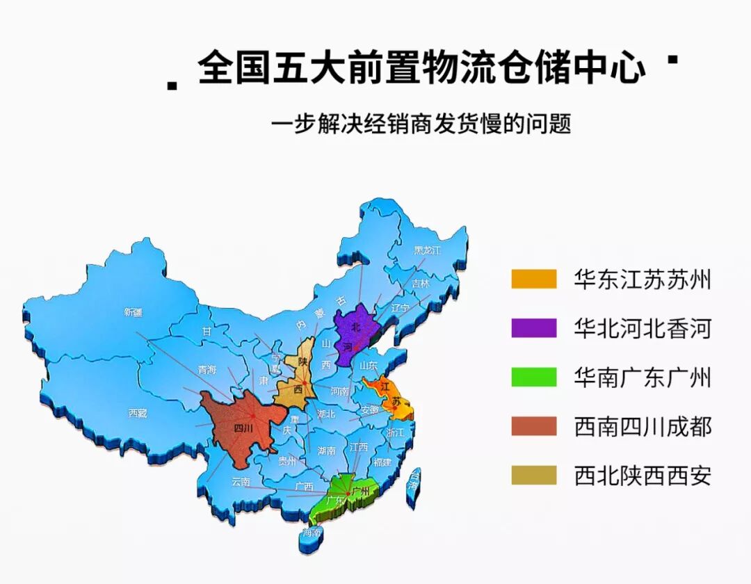 9.全国五大前置物流仓储中心:解决经销商发货慢的问题
