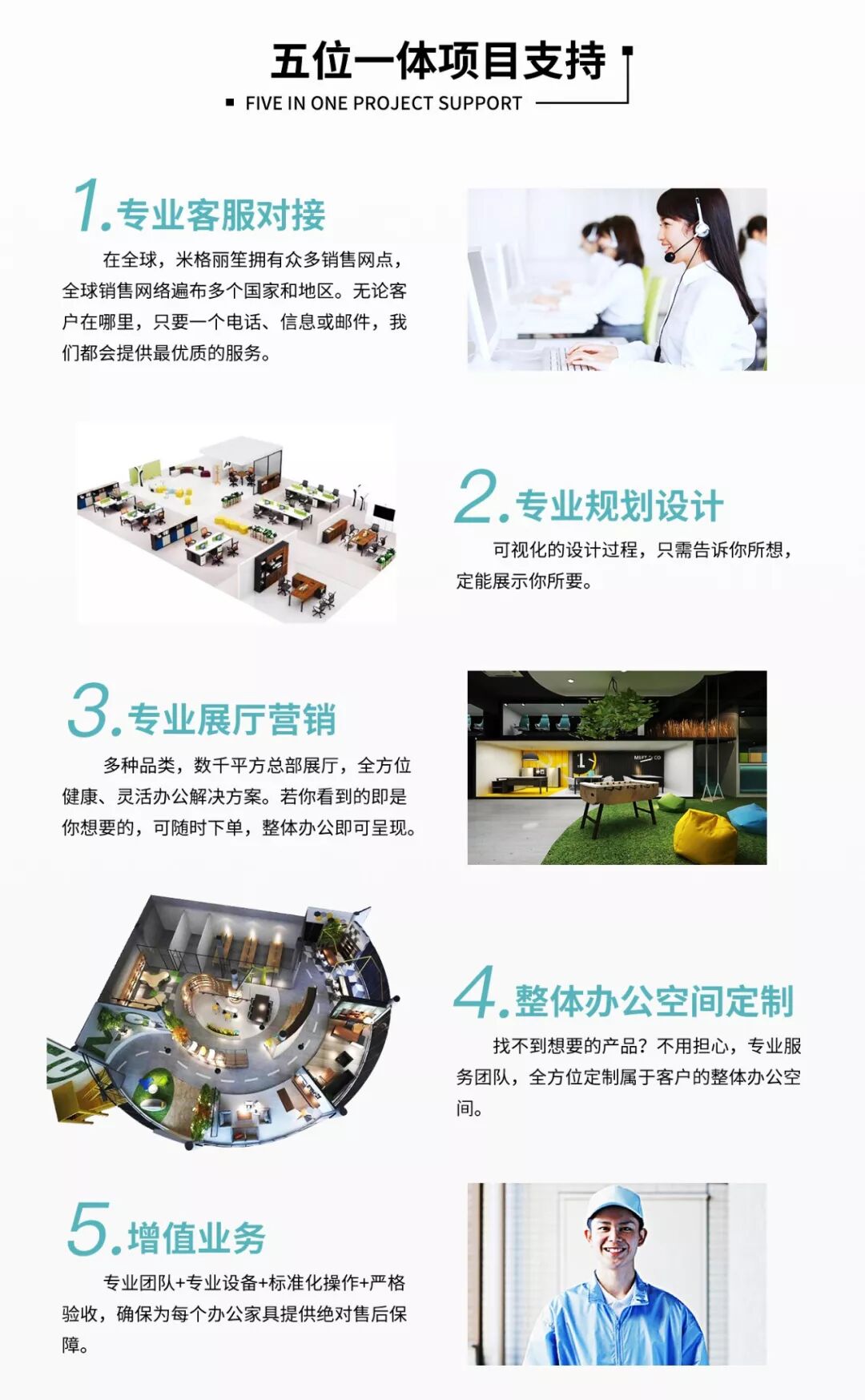 米格丽笙办公家具成立于2011年以来,通过不断挖掘和分析各行业办公空间,已构建出超100种办公空间家具应用解决方案。并以空间设计学,光环境设计学,声学以及100余项技术专利,打造出舒适、灵活、高效、创新、智能的办公空间家具应用解决方案。