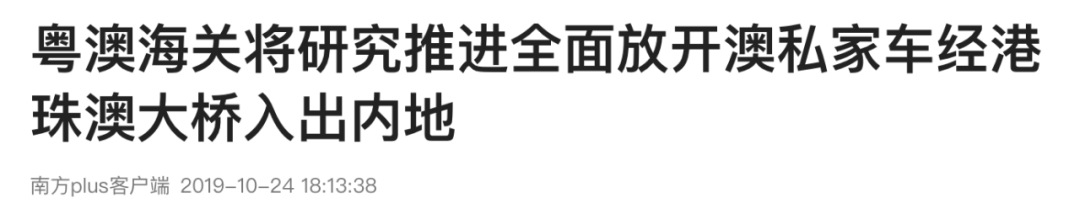 澳门私家车经港珠澳大桥出入内地,或全面放开1