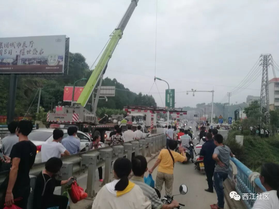 10月25日小编听网友说:藤县西江大桥大塞车了,等很久都没有通车!是因为一货车“干掉”了限高杆,很多人围观!小编刚好有空就赶到现场,一看:大货车车身太高了,车头部分刚好通过,结果车身就把限高杆撞落下来,一高一低的拦在了路上,另一边如果是轿车可以从底下通过。现场看到交警们在忙碌着处理,吊车来了后疏散尽在路边的群众给吊车起吊限高杆腾出空间,清理了障碍物后大货车被开走,这才结束了堵塞的局面。来源:西江社区