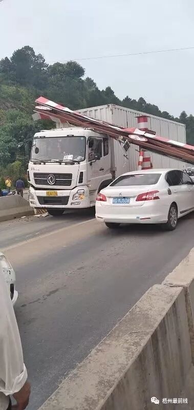 历史第一次!藤县西江大桥,一货车把限高杆撞掉...
