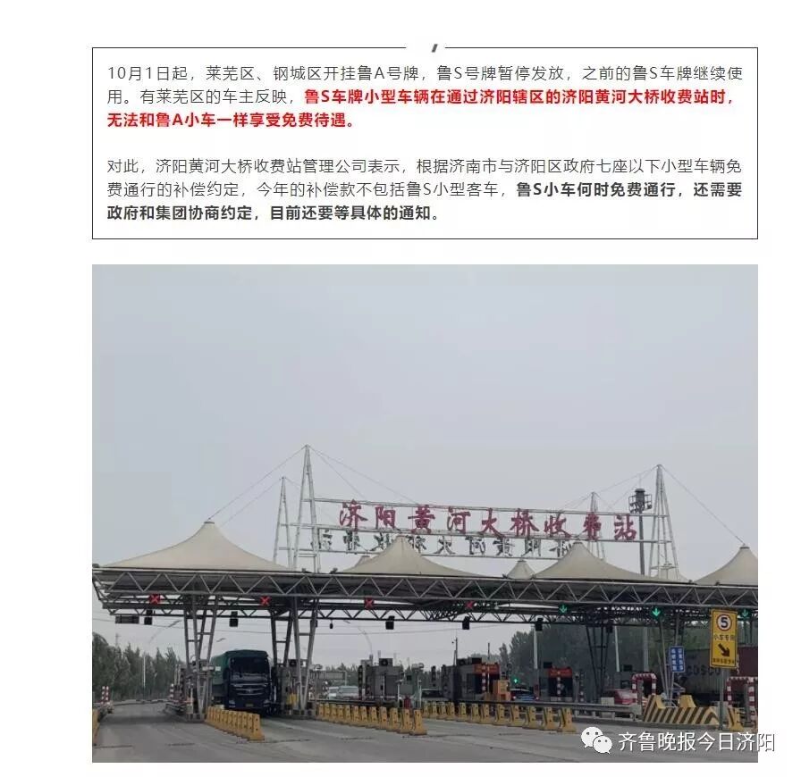 根据济南市与济阳区政府对七座以下小型客车免费通行的补偿约定,今年的补偿款不包括鲁S小型客车,何时免费通行,需要政府和我们集团沟通协商约定补偿金额后,根据政府和集团要求实施免费通行。