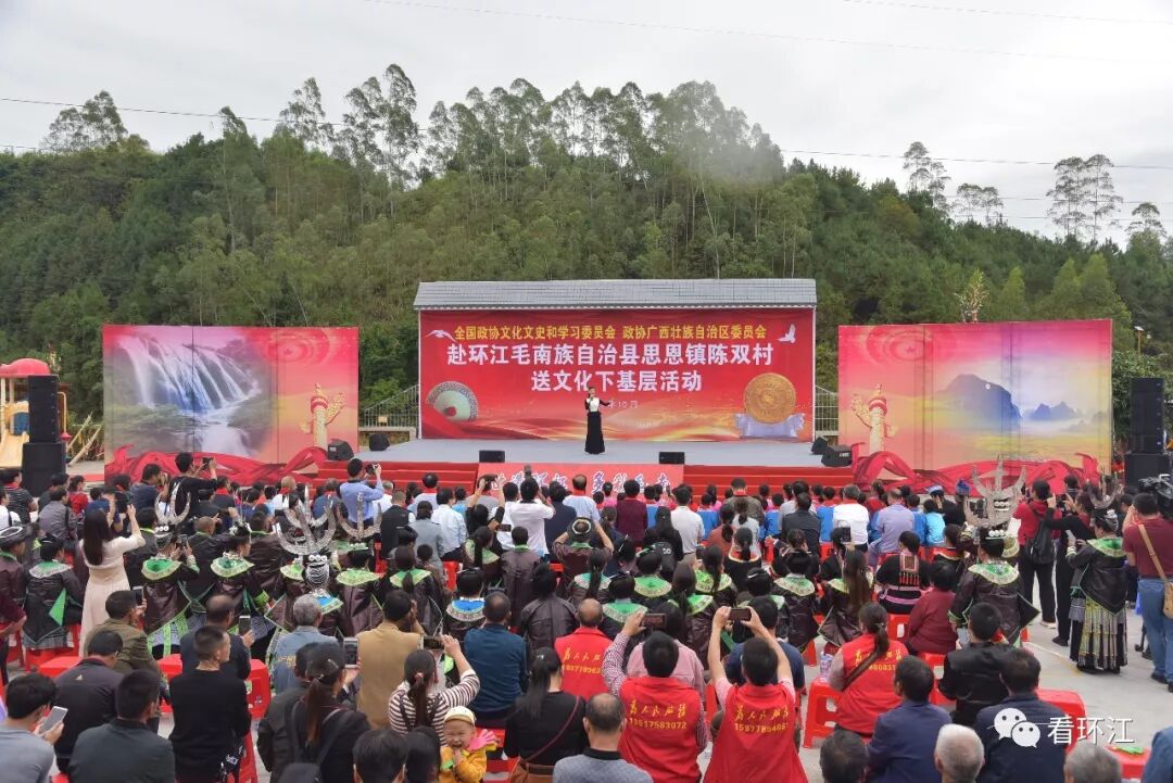 10月23日,赴河池市开展送文化下基层活动的全国政协委员和文艺工作者来到了此行的第二站——环江毛南族自治县思恩镇陈双村。
