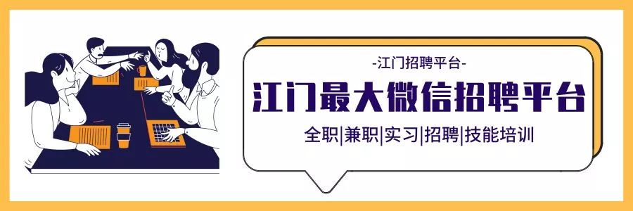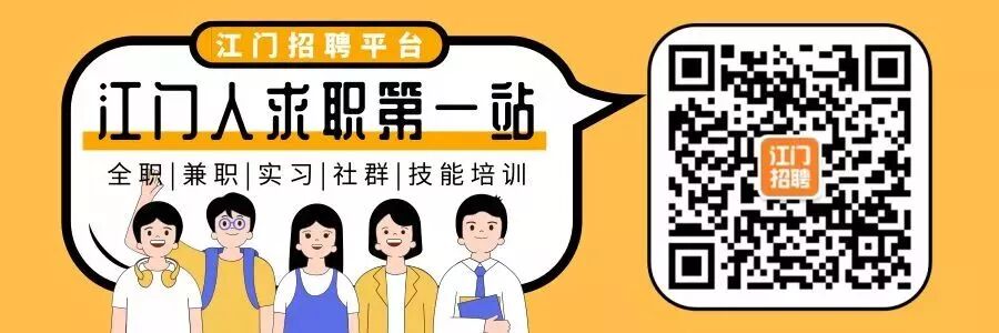 ? 最新招聘 点击蓝字即可查看找工作 | 找兼职 | 找实习 | 求职群 ? 求职必备点击蓝字即可查看1对1简历修改定制 | 江门就业创业政策补贴初级会计证 | 职场提升学习 | 职业方向测评