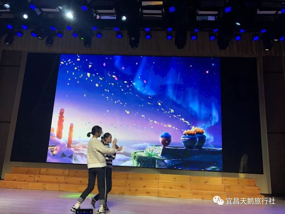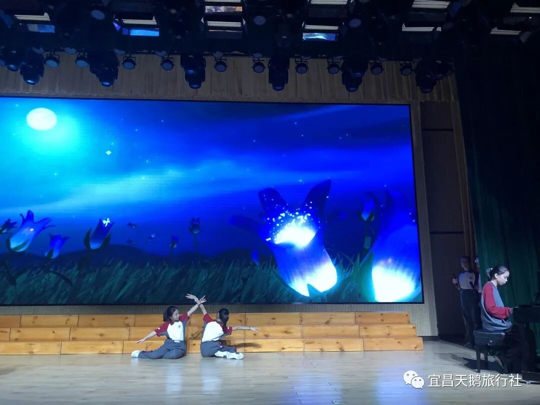 享用完晚餐之后,期待已久的文艺晚会就拉开序幕啦!同学们都在舞台上尽情展示自己,精彩的节目一个接着一个。