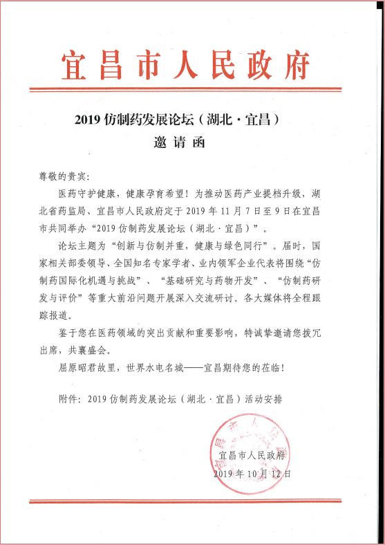 【学术论坛】宜昌将举办2019仿制药发展论坛