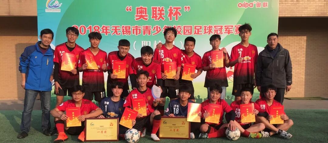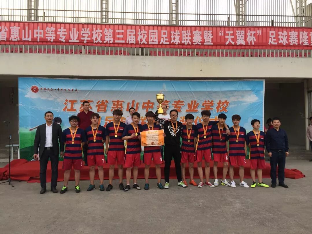 校园足球基础丰厚,赛事成绩丰硕。我校足球队曾多次获无锡市惠山区高中足球联赛冠军,2018年获无锡市校园足球联赛冠军,2015年、2018年参加两届江苏省职业学校足球赛分别获中职组第二名,高职组第三名的好成绩。