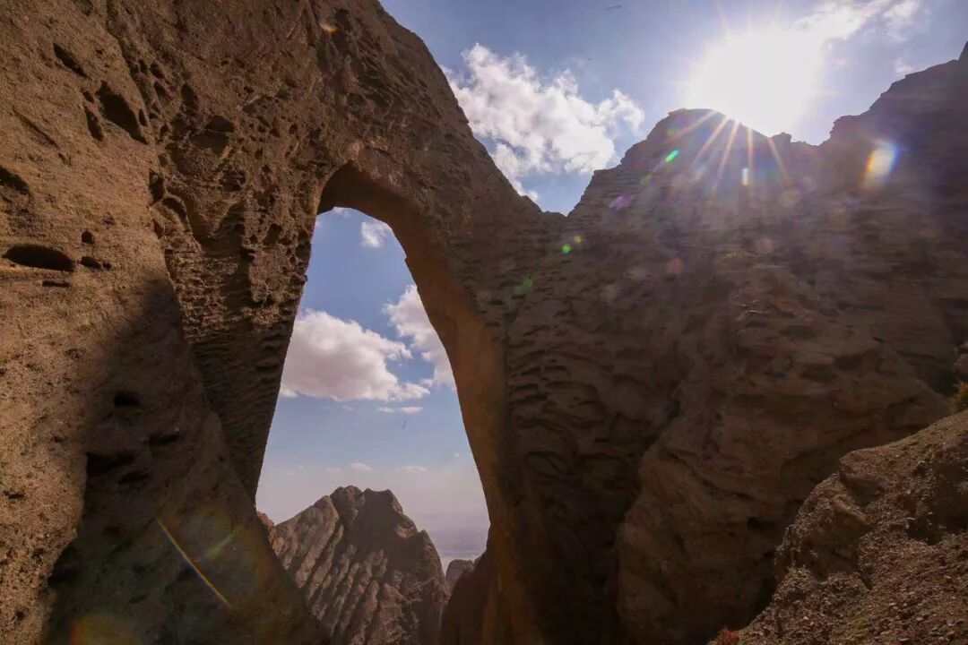 天门是大自然造化中最神奇的一种,阿图什天门竖立在天山与昆仑山的交界之处,绝对是大自然的鬼斧神工之作。到达天门,好像到了另外一个仙境,眼睛所及尽是云层和山峦,崖壁上布满了千姿百态,像一只巨龙大石蟠绕在崖壁上。这里的每一块石头像是一副神奇的壁画,令人赞叹。