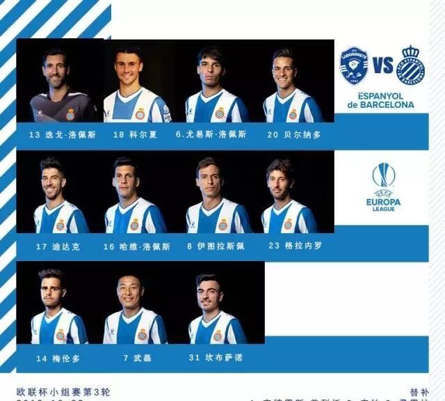 北京时间10月25日凌晨0:55分,西班牙人在欧联小组赛中客场对阵卢多格雷茨。这是新帅马钦上任后迎来的首场欧联杯比赛,由于队内卡莱罗、皮亚蒂等锋线球员有伤,上轮替补出场仅仅15分钟的武磊此役首发出战。