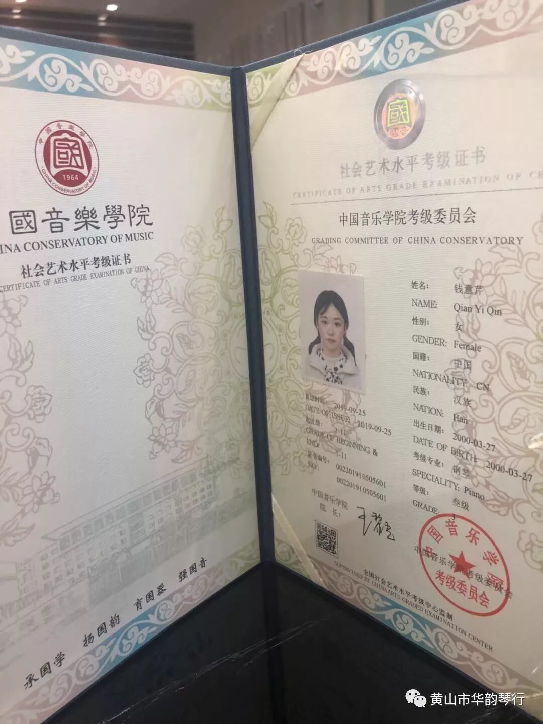 证书领取地点:黄山市屯溪区长干中路96-13号(雅马哈钢琴专卖店)