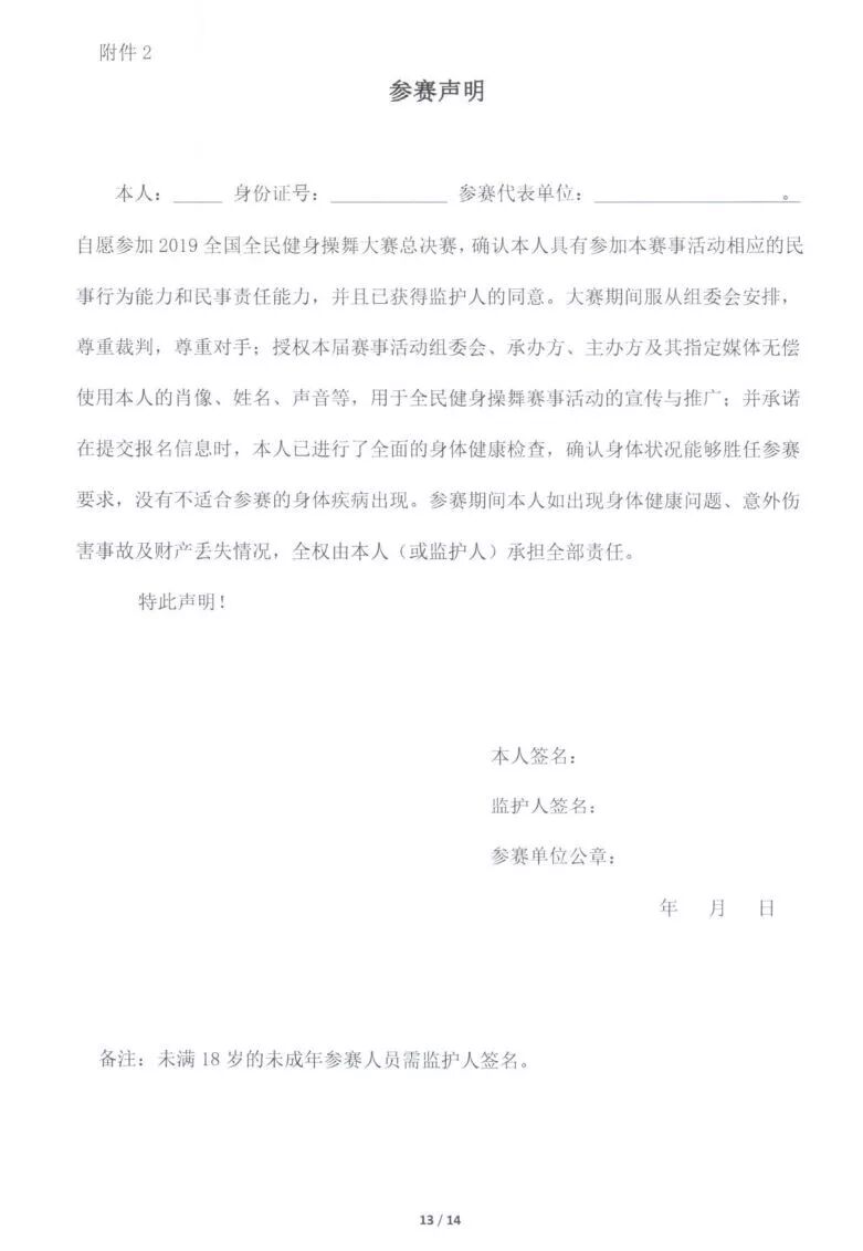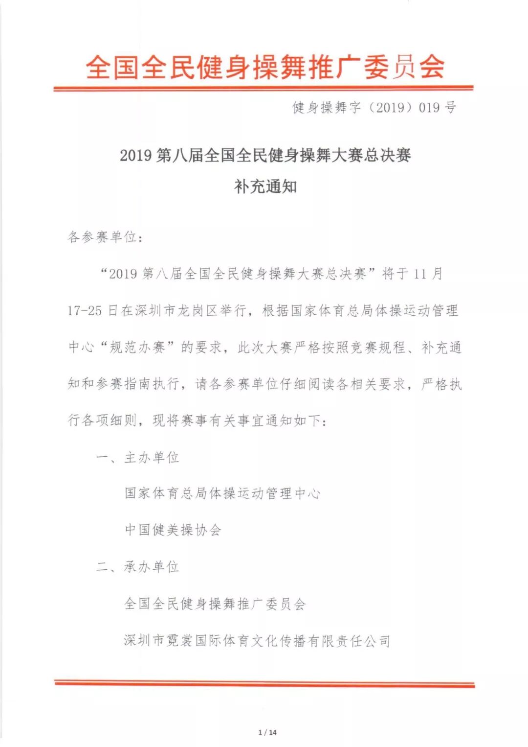 2019第八届全国全民健身操舞大赛总决赛补充通知