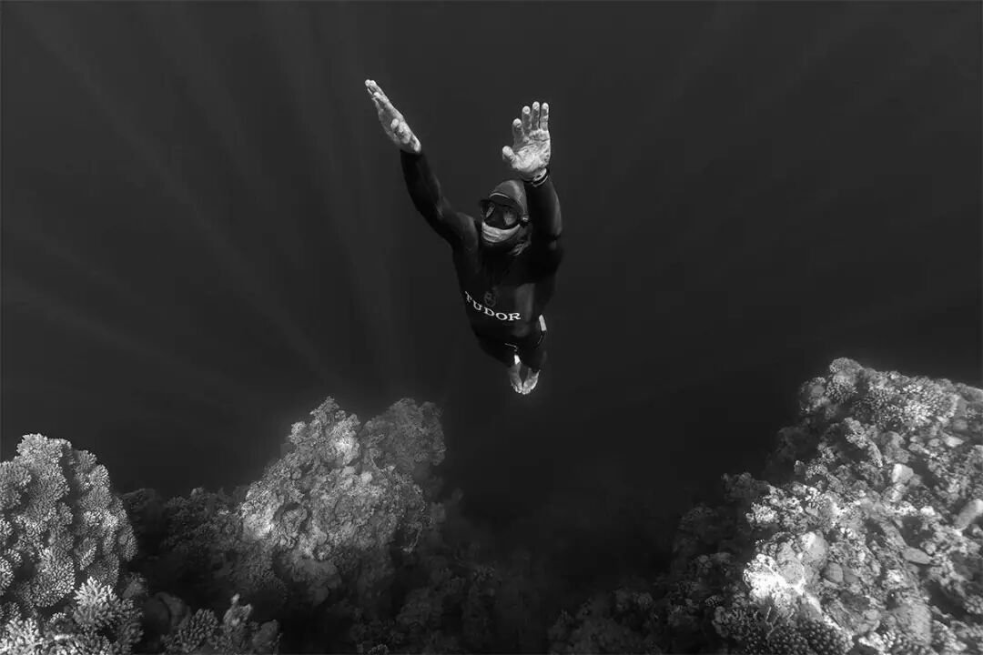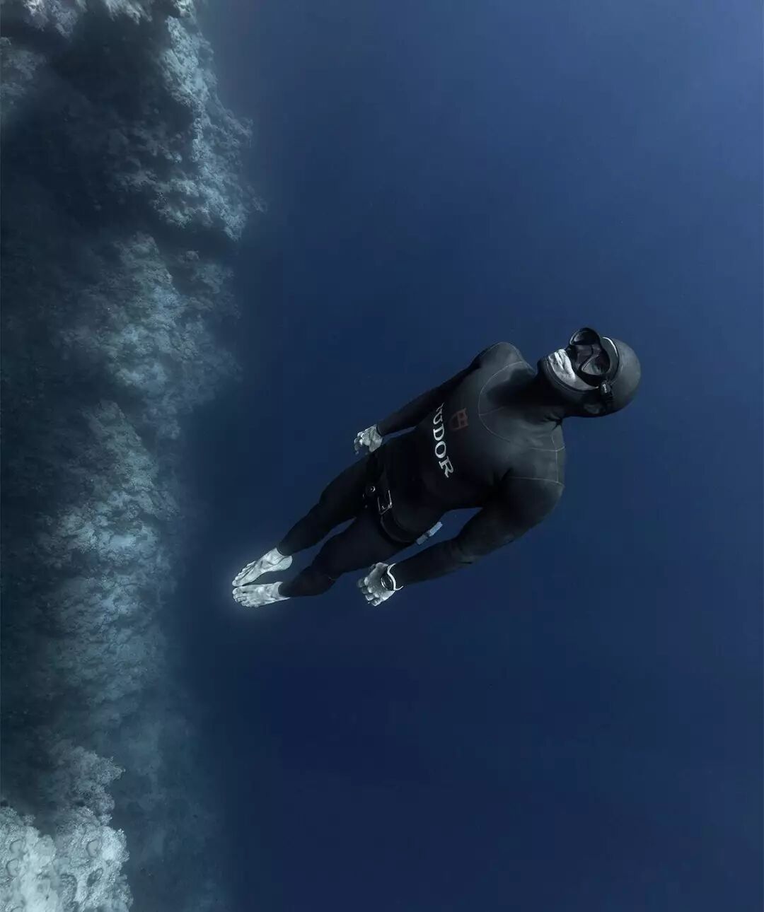 潜遍四大洋的冒险家们显然已不再满足于征服下潜的深度和宽度,水的温度与介质正在成为新的突破点。在寒风肆虐的阿尔卑斯偏远山地,法国自由潜水冠军摩根·波奇斯佩戴帝舵领潜型(TUDOR Pelagos)腕表向诡秘深邃的冰下世界发起挑战。