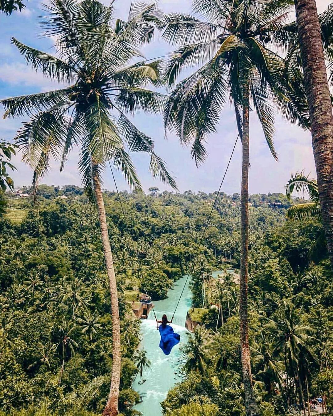 位于乌布原始森林深处的Bali swing是巴厘岛所有网红秋千的鼻祖。二十米高的秋千坐落于山谷与悬崖的上方,荡起的瞬间,乌布的丛林与瀑布从身下掠过,对大多数人来说这已经是惊心动魄的冒险。