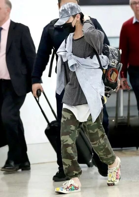 机场背完,演唱会上也要背,styling要贯彻到底。