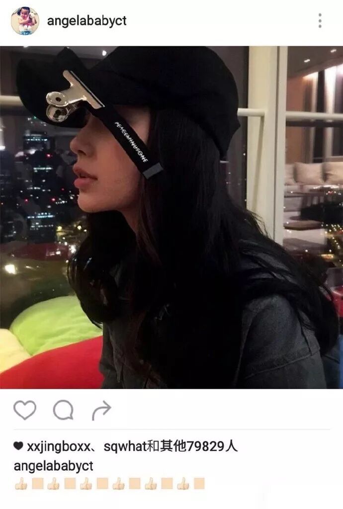 帽子上的同款铁夹,Angelababy作为GD的粉丝马上跟上。