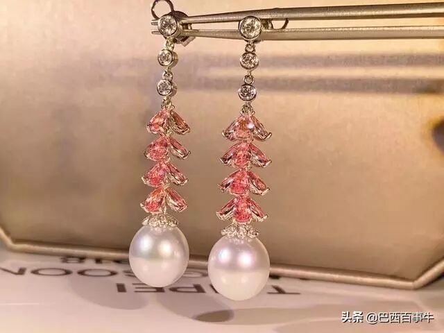 出新 无烧帕帕拉恰莲花刚玉海水珍珠耳环最标本的帕帕拉恰色 粒粒色标全美 精工细作 层层可动